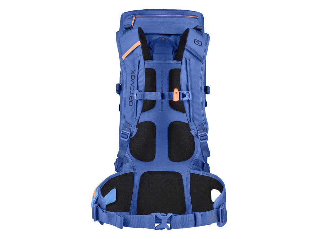 Zádový systém COMFORT CONTACT BACK SYSTEM je tvořen v zónách pěti polštářů a prostorem mezi nimi, který je důležitý pro lepší cirkulaci vzduchu. Zádový systém přenáší zatížení batohu rovnoměrně mezi ramena a bedra. Pro maximální fixaci má batoh bederní i hrudní popruh. Součástí hrudního popruhu je výstražná píšťalka.