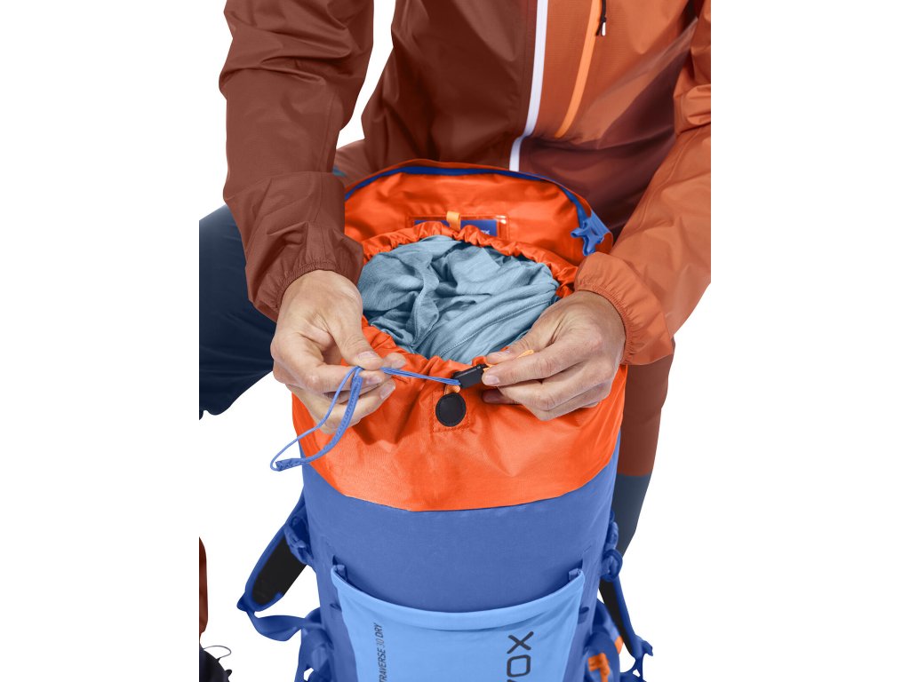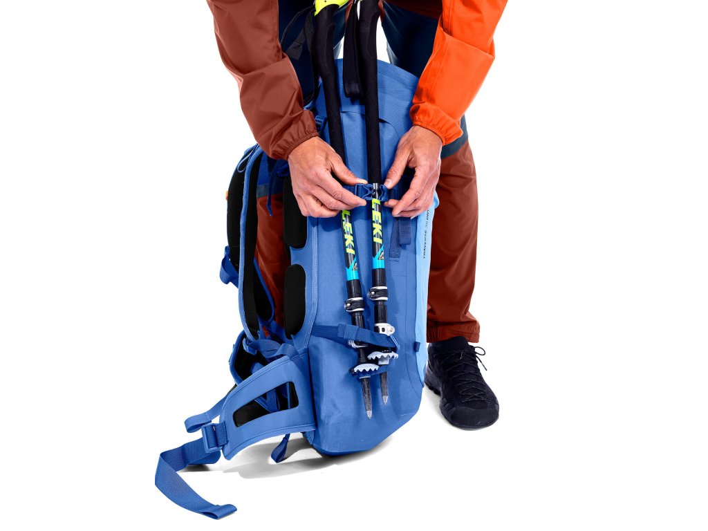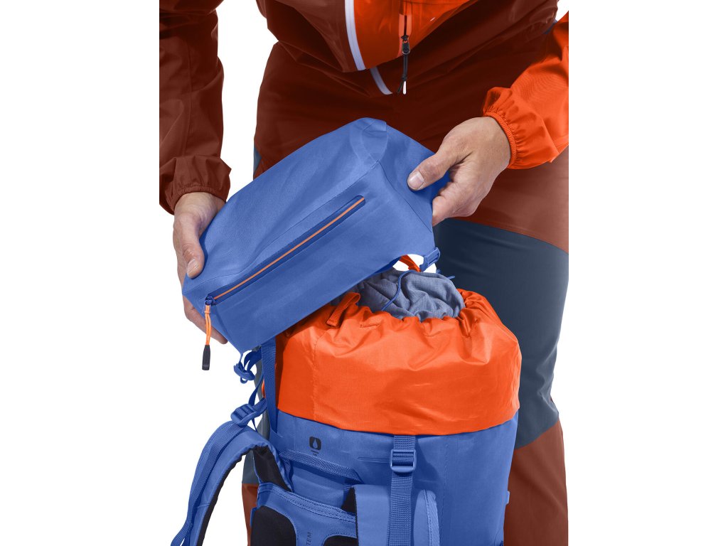 Všestranný nepromokavý batoh na náročnou turistiku v létě i zimě. Polstrovaný zádový systém i popruhy s důmyslným odvětráním ti pohodlně sedí i při těžším nákladu a přitom nechávají proudit vzduch pro tvůj vyšší komfort při nošení. Když přijde nepříznivé počasí, tvé věci jsou díky nepromokavému materiálu (více než 50 000 mm) v bezpečí. Praktická je možnost odepnutí vrchního víka nebo uchycení hůlek či integrovaná síťka na helmu.