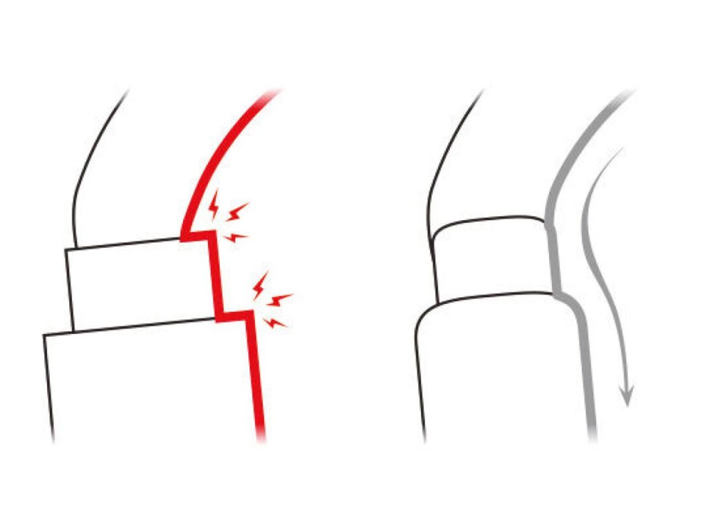- Zvětšený prostor na stranách u západky, což zvyšuje životnost používaných textilních ok a to také díky jejímu hladkému designu, který zároveň zabraňuje zasekávaná textilu v karabině.