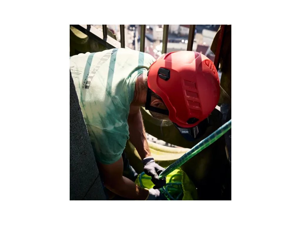 Vnější skořepina je vyrobena z lehkého, ale robustního ABS plastu, zatímco vnitřní skořepina využívá EPS pěnu tlumící nárazy, která zajišťuje spolehlivou ochranu před nárazem. Utěsněná konstrukce přilby poskytuje *elektrickou izolaci v souladu s EN 50365 třída 1 a ANSI/ISEA Z89.1-2014 typ I třída E.