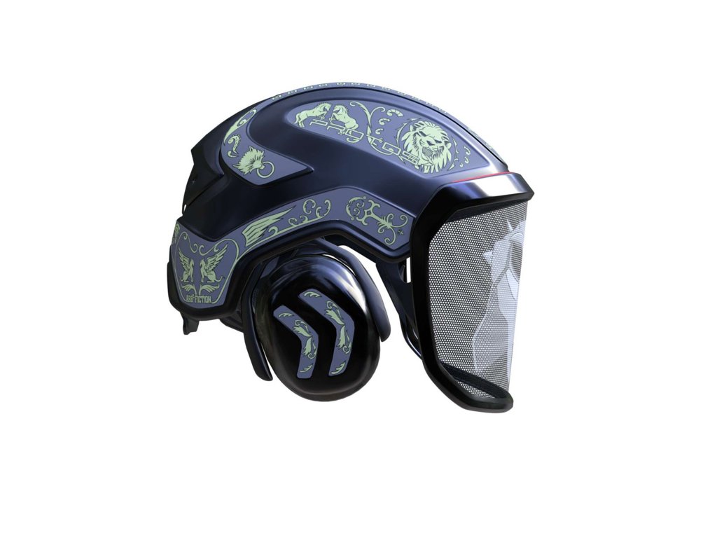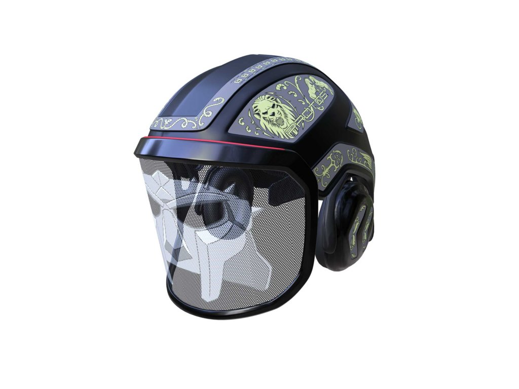 - Chrániče sluchu s regulovatelným přítlakem pro individuální nastavení, které jsou po odklopení ukryty ve vnitřním meziprostoru přilby.