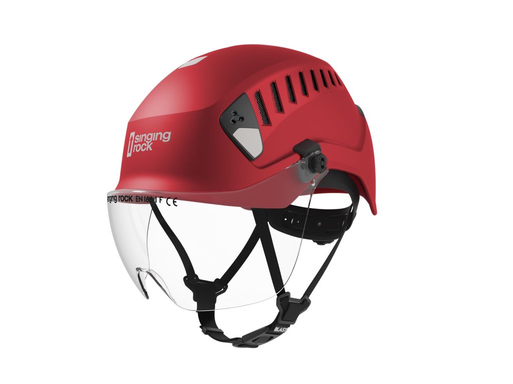 - integrované univerzální euro sloty 30 mm jsou kompatibilní s většinou ochranných sluchátek a štítů na trhu i s držákem na svítilnu Singing Rock LAMPFIX