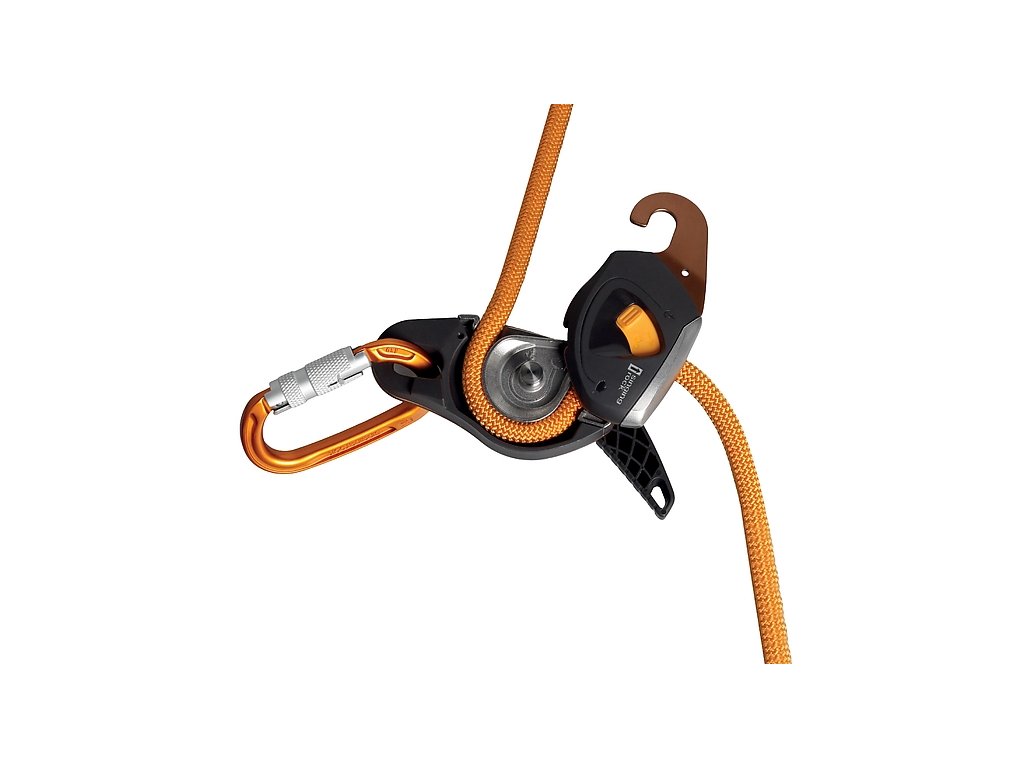 - Snadné dobírání lana umožňuje zařízení používat pro krátké výstupy po laně.