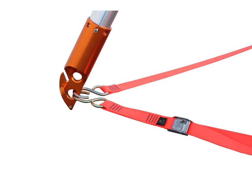 - Délka popruhu je nastavitelná až na 6 m pro rozpětí mezi nohama, které může vyžadovat přetažení popruhů přes překážky, jako jsou trámy, obrubníky, pařezy, kameny nebo nerovný terén.