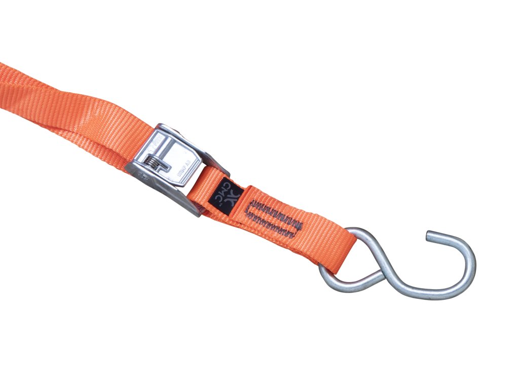 - Popruhy jsou vyrobeny z dobře viditelného oranžového plochého pásku, který prochází rychle nastavitelnou vačkovou sponou.