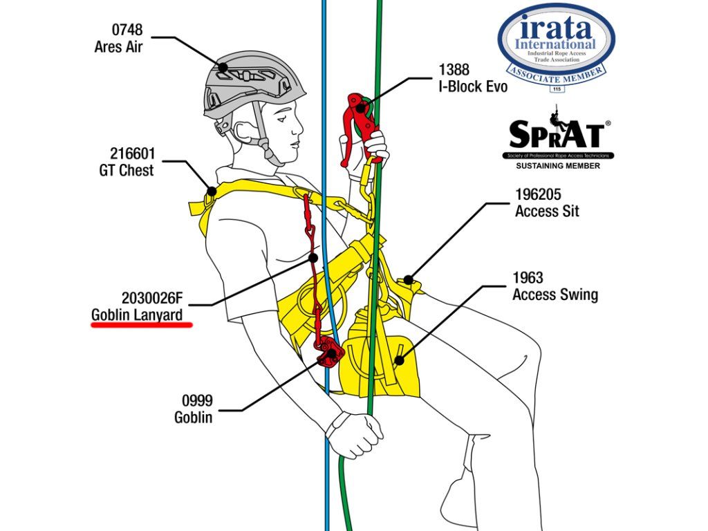 Goblin Lanyard je plochý doplňkový lanyard pro zachycovač pádů Camp - Goblin, při zajištění na pomocném lanu. Lanyard se vyrábí ve dvou délkách a to 26 nebo 40 cm a pomocí vodícího kroužku Camp - Goblin Rope Surfer zaručuje zachycovači pádu bezproblémový chod na lanu při stoupání nebo spouštění. Pro zvýšení bezpečnosti je lanyard vybaven gumovými zarážkami, které brání protáčení karabiny. Lanyard se připojuje pomocí dvou ocelových oválných ocelových karabin (nejsou součástí balení).